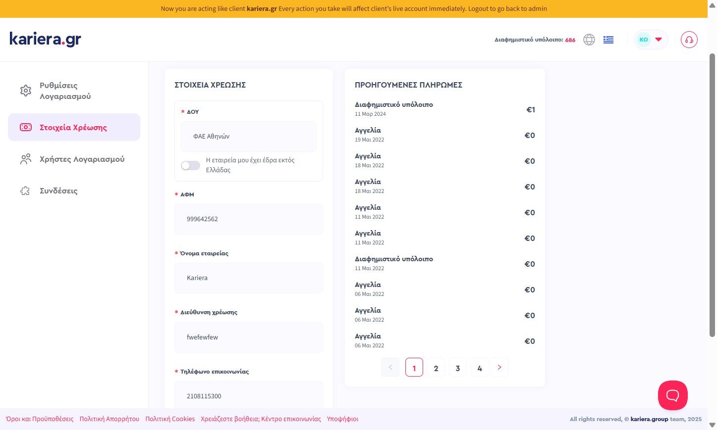 4. Προκειμένου να αλλάξεις τα στοιχεία χρέωσης κάνε κλικ στην επιλογή: "Στοιχεία Χρέωσης"