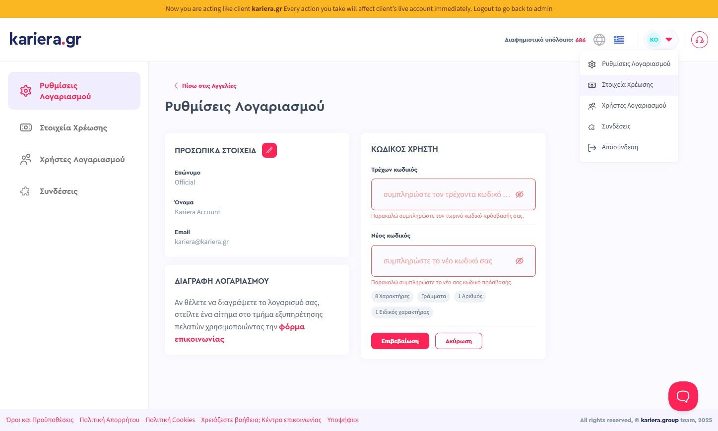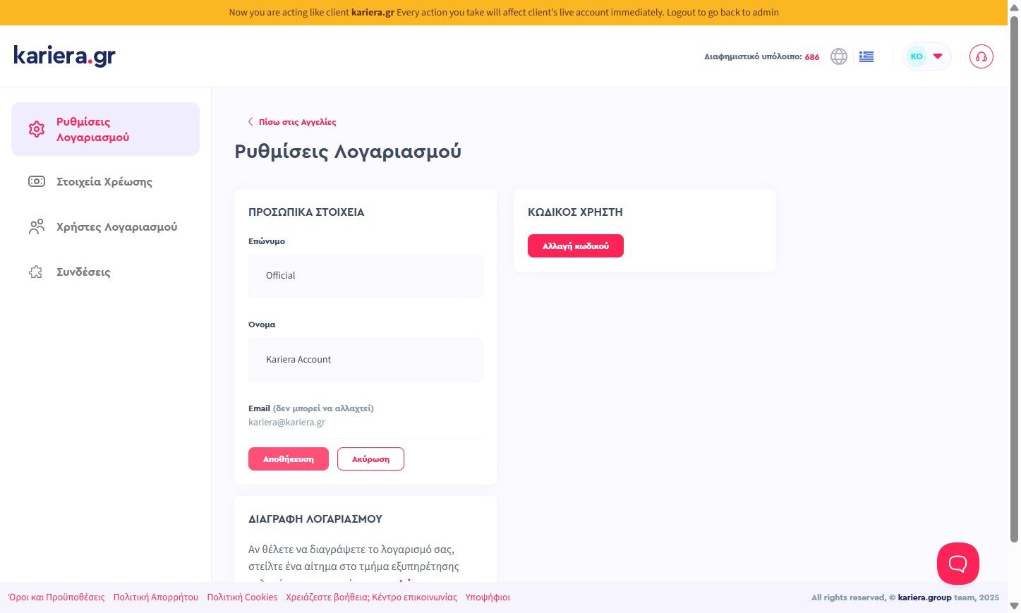 1. Κάνε click "Ρυθμίσεις Λογαριασμού"